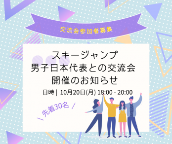 お知らせ 2025/10/13 10月20日(月) スキージャンプ男子日本代表チームとの交流会 参加者募集のご案内 今年初めにスキージャンプワールドカップの観戦ツアー・交流会を企画させていただいたスキージャンプ男子日本代表チームと、以下の要領でミュンヘン市内で交流会を実施す..続きを読む